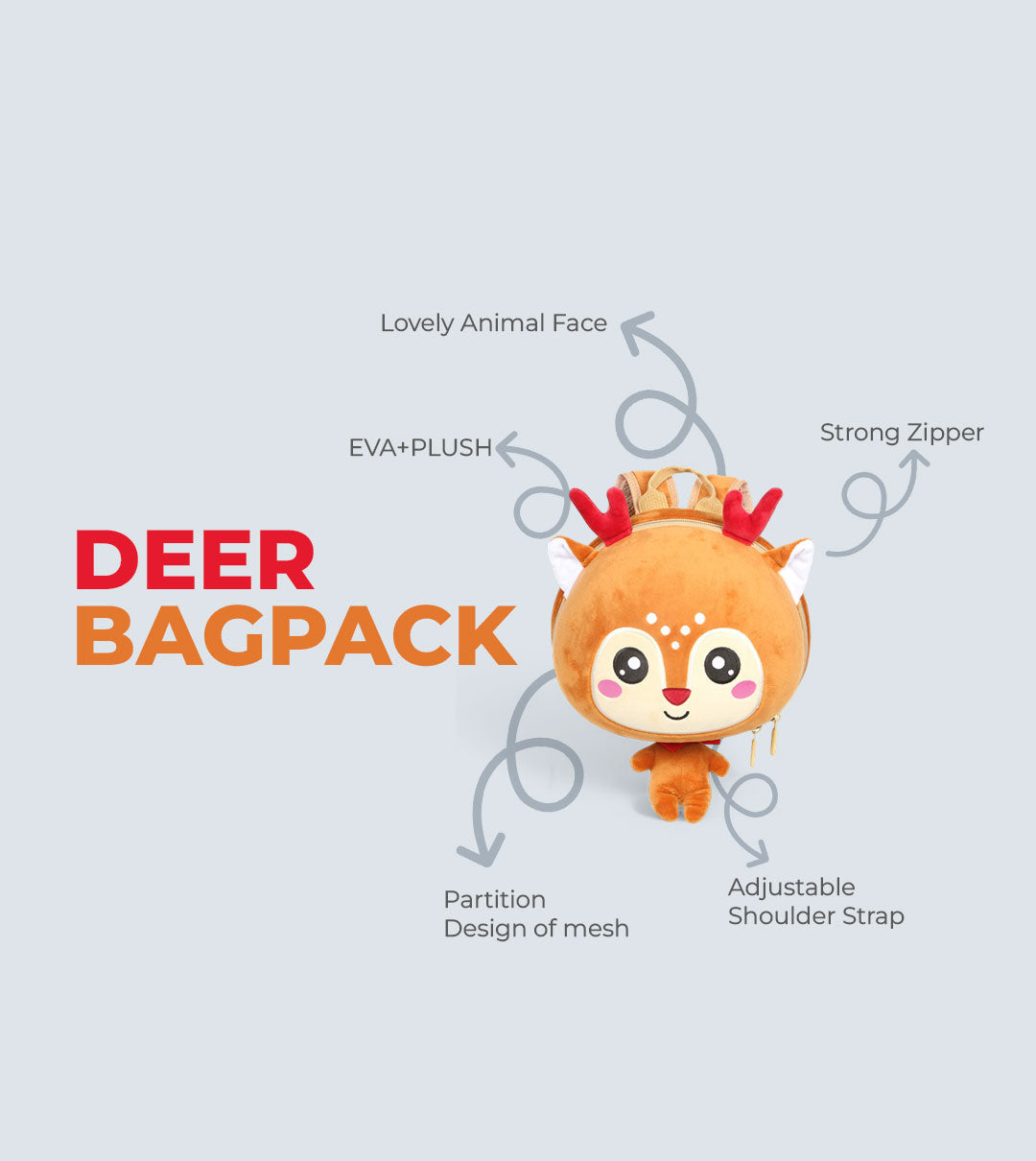 Deer Backpack for Kids – Cute Plush 3D Doll, Lightweight & Waterproof | Tykle