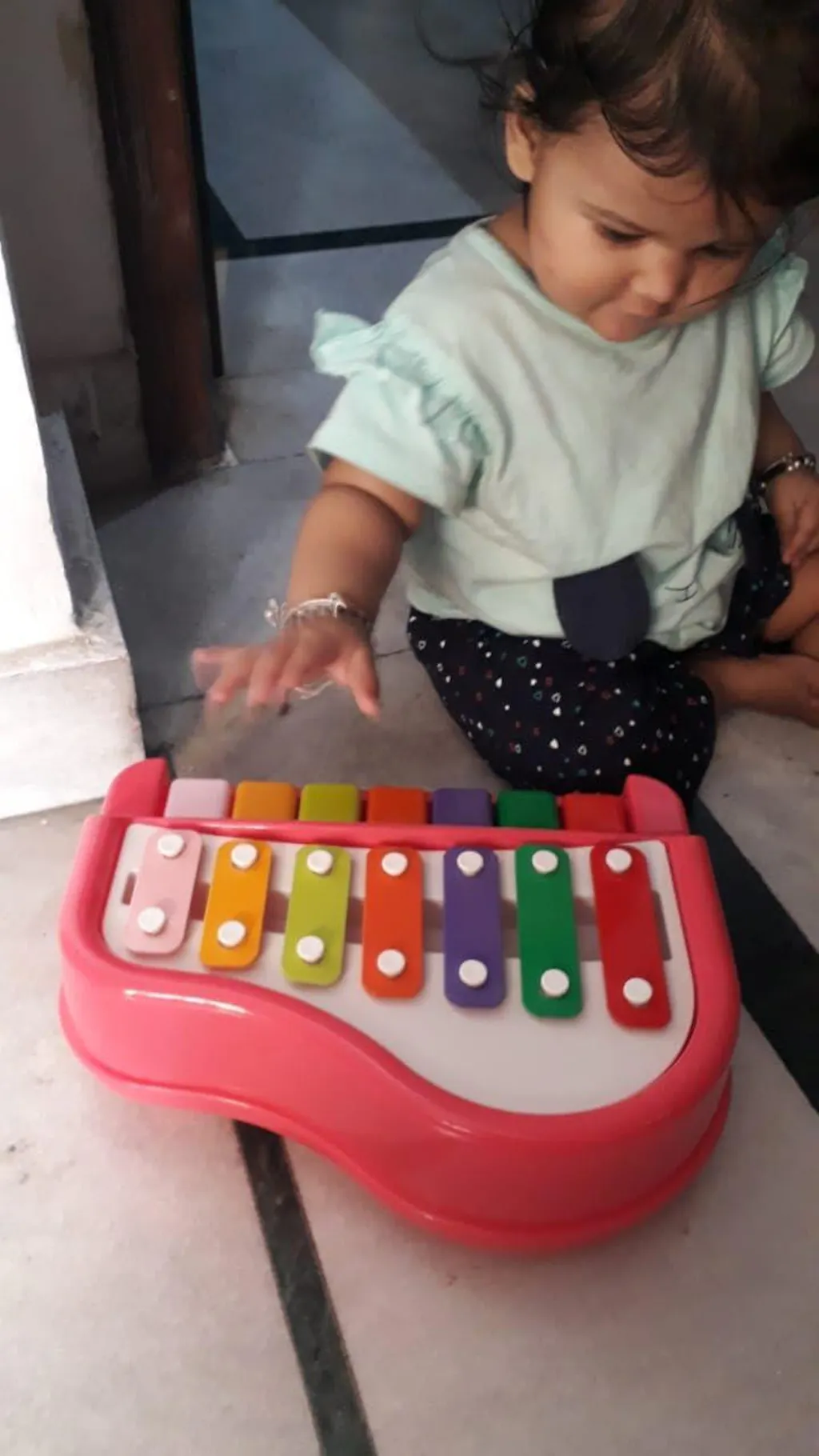 The piano toy has 7 colorful notes that produce different sounds. This instrument is a perfect choice for developing a taste for music.