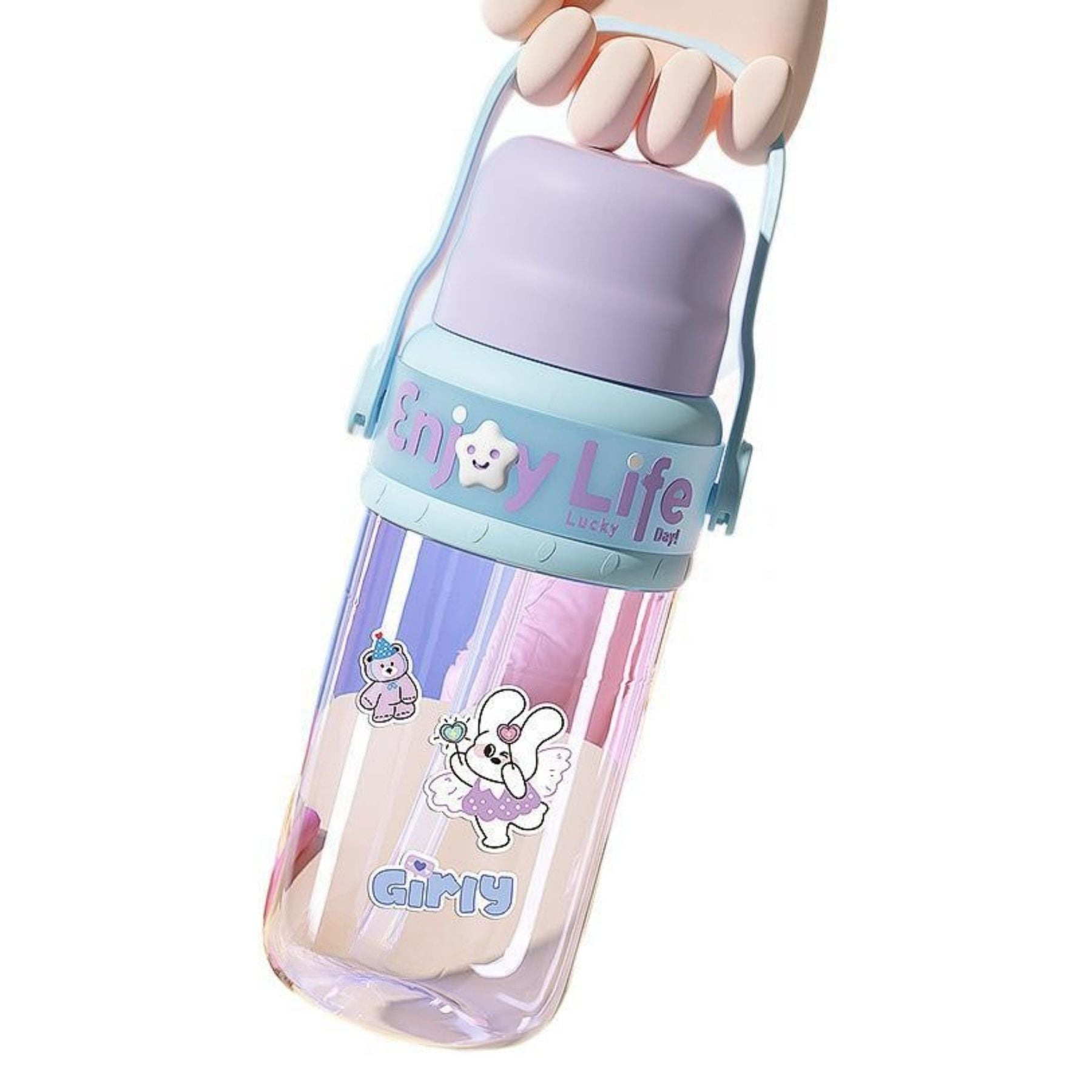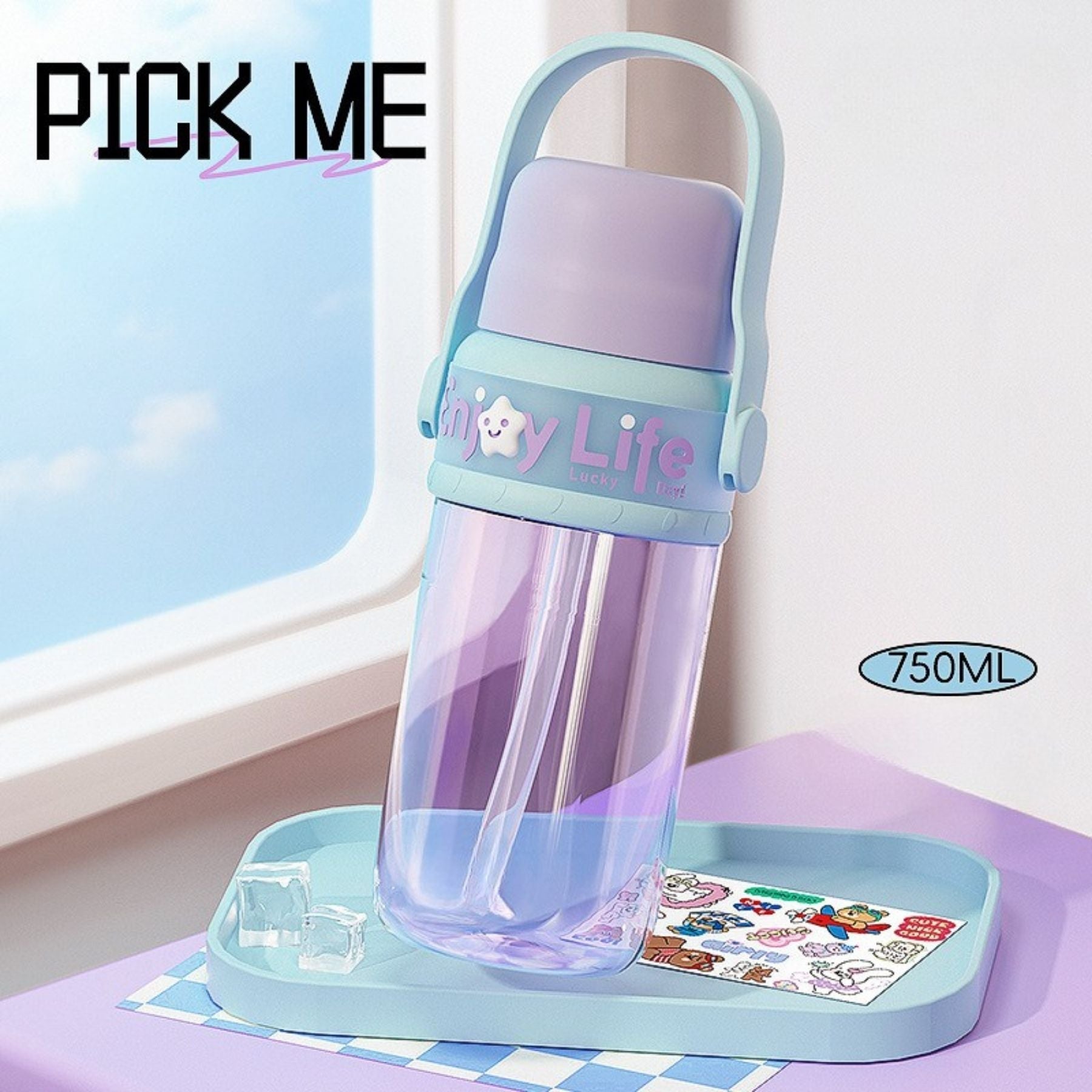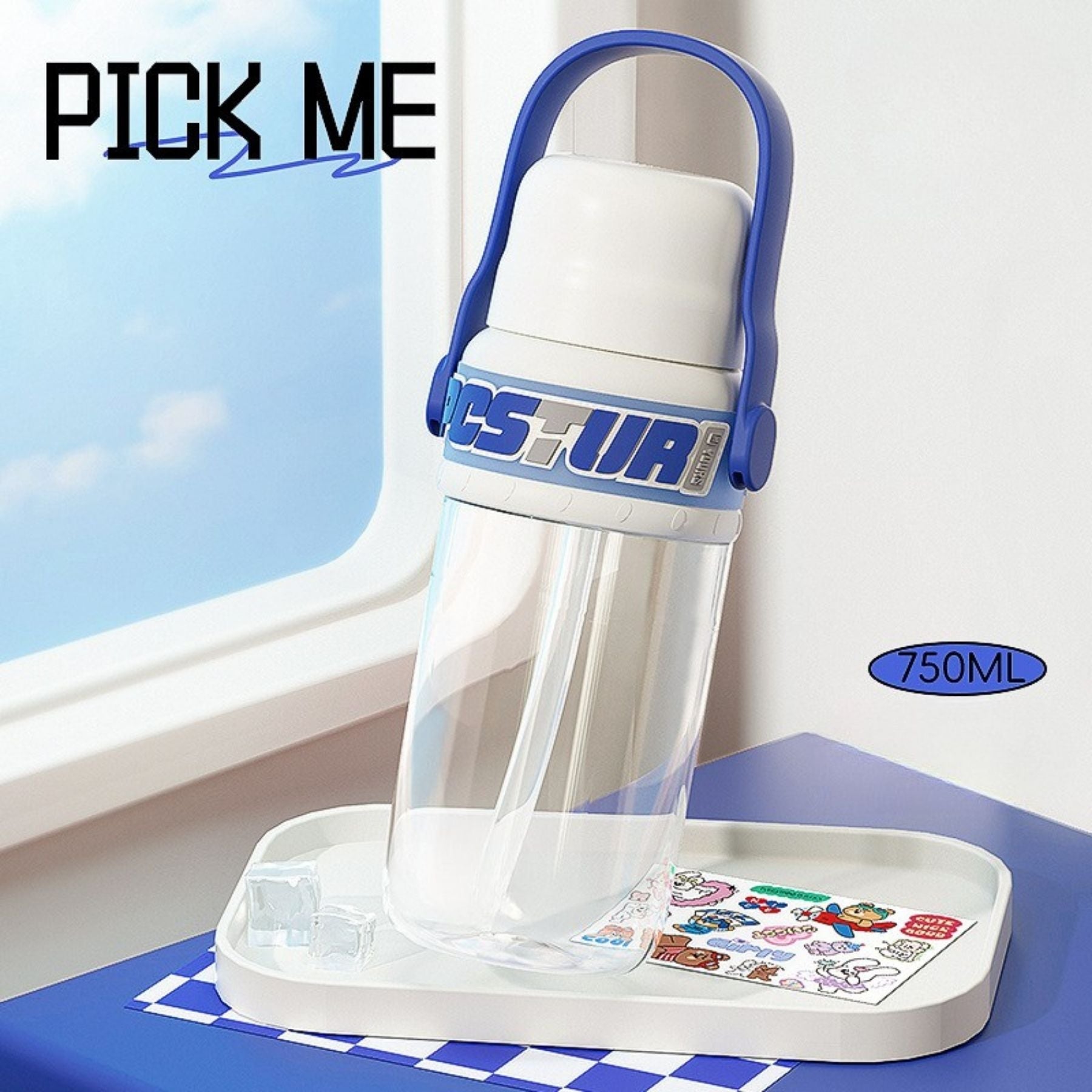 The bottle has a generous capacity of around 750 ml. This is a perfect size for school, gym, or travel. It has a carrying handle. The built-in straw of the bottle helps to prevent spills while sipping.