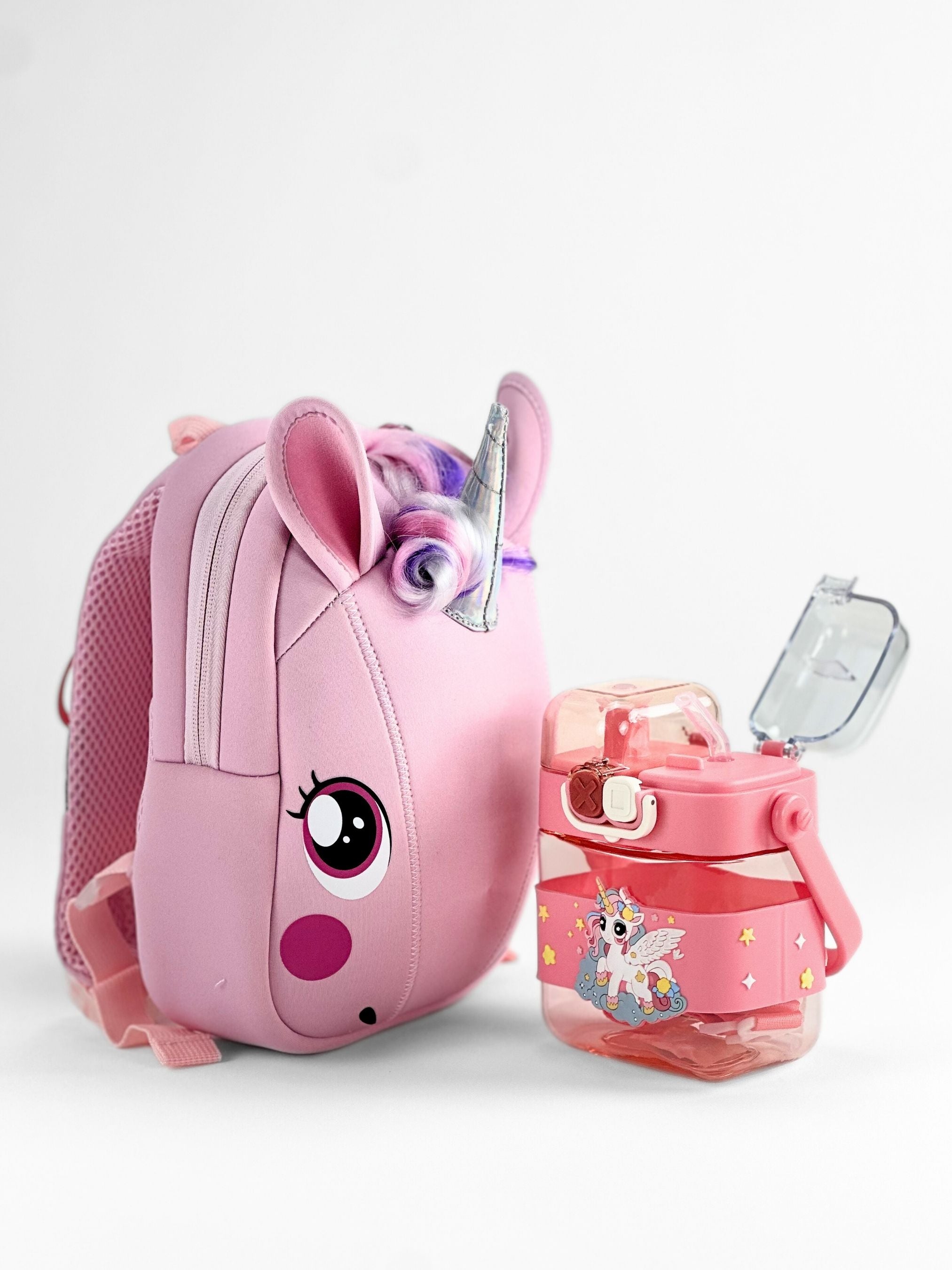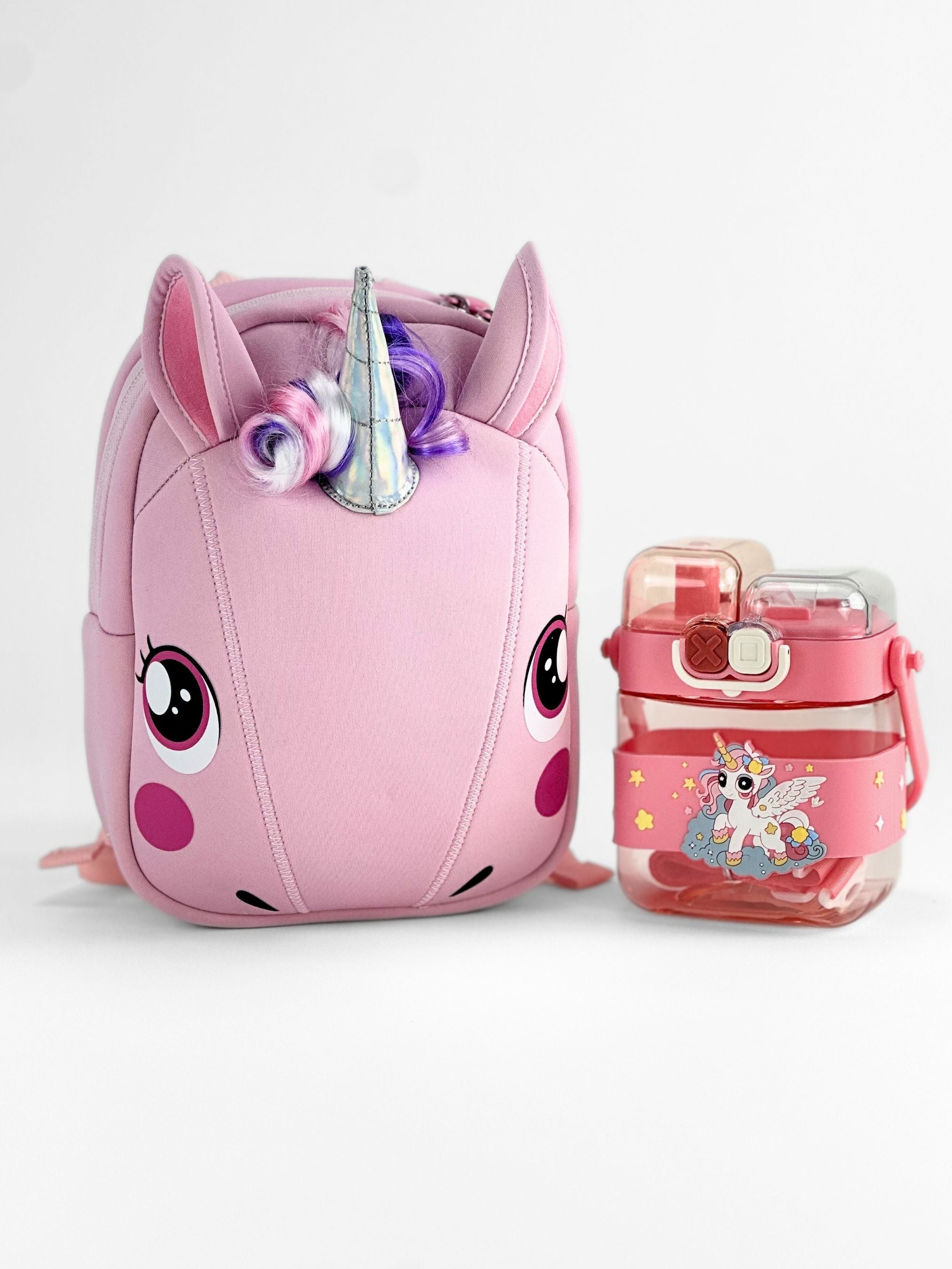Magical and practical! The Tykle Pink Unicorn BTS Combo brings together a premium soft neoprene unicorn backpack and a matching unicorn-themed water bottle – the perfect pair for your little princess.