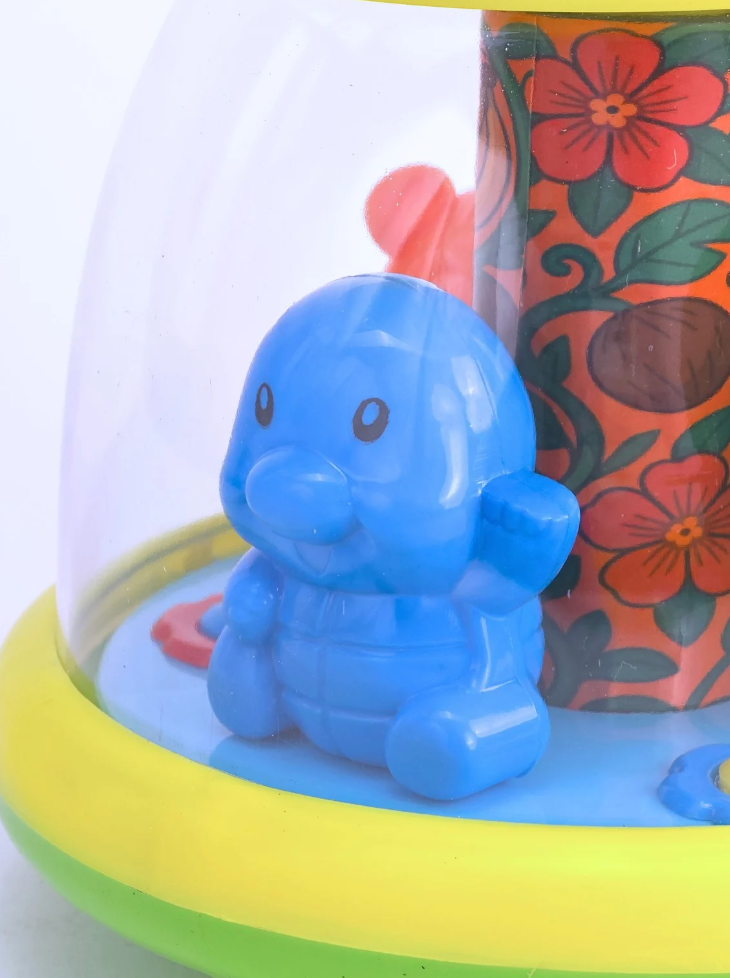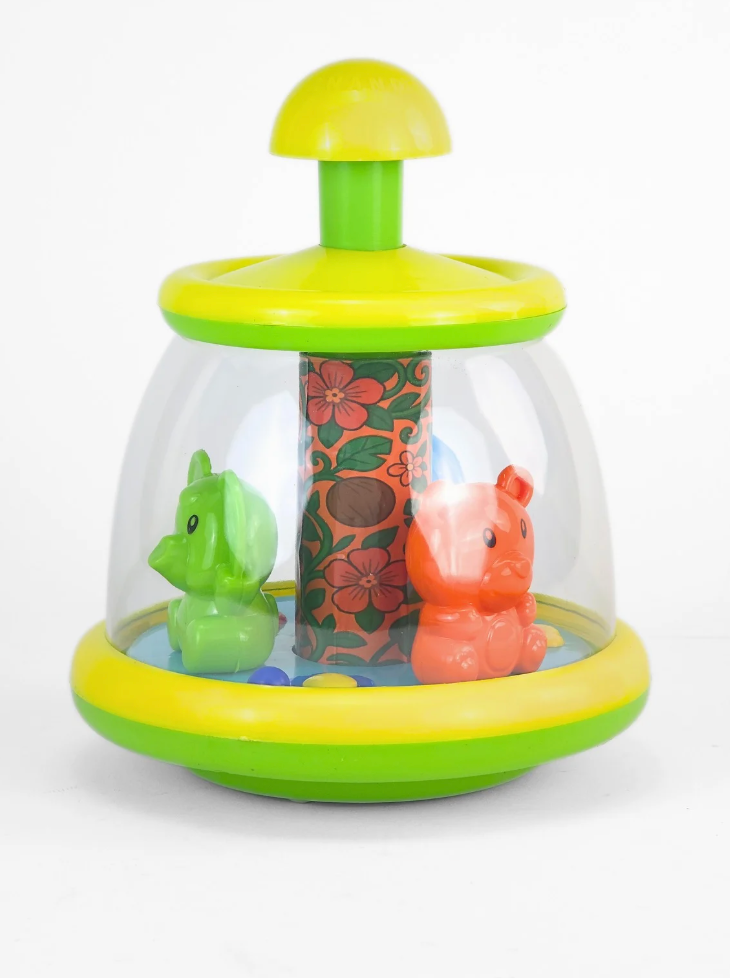 With a simple press on the top, the inner base spins smoothly, sending the colorful animals on a joyful merry-go-round ride. This action helps children understand cause and effect while encouraging hand–eye coordination, fine motor skills, and visual tracking.
