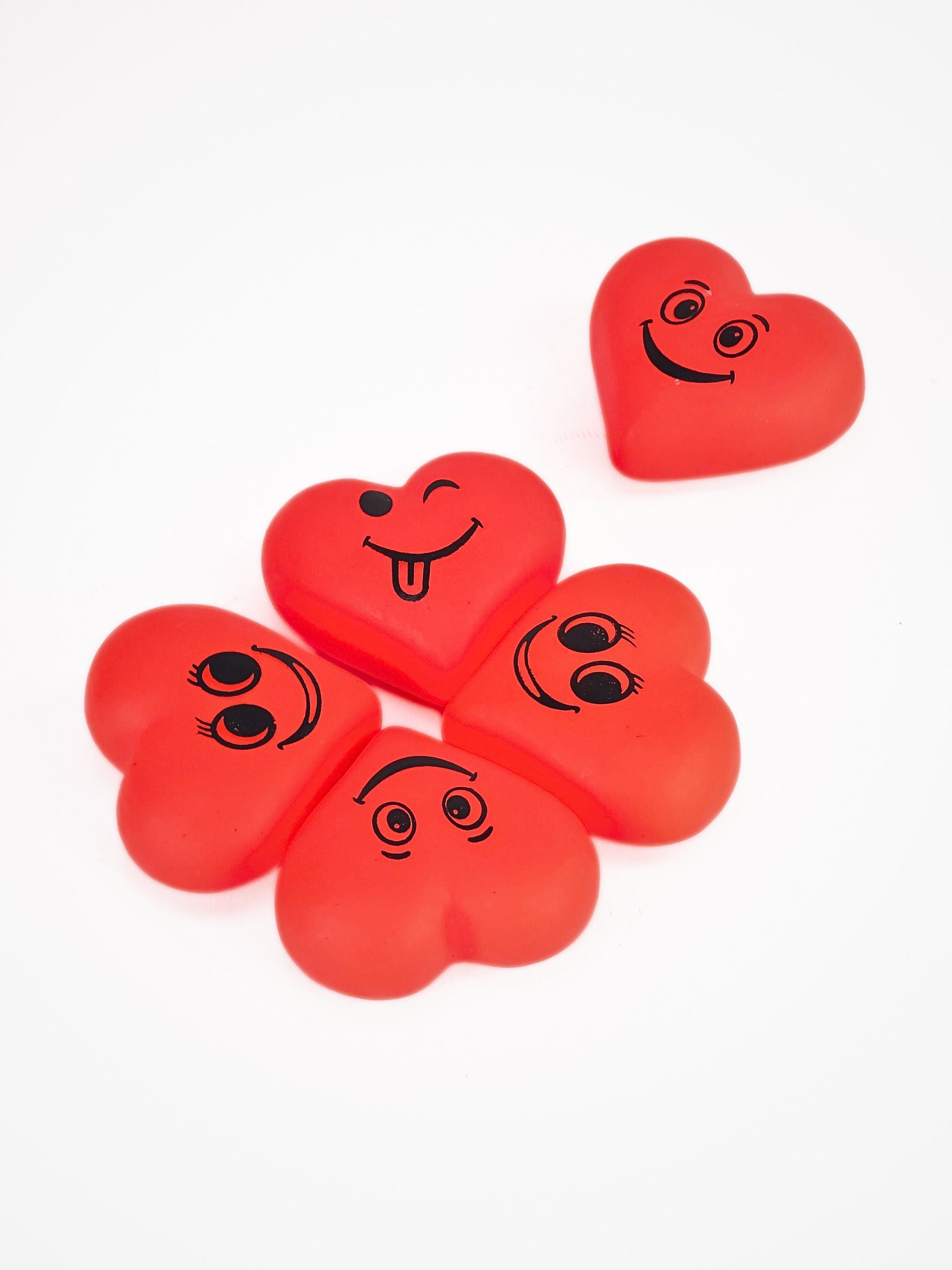 Heart-shaped squeeze toys with emoji faces