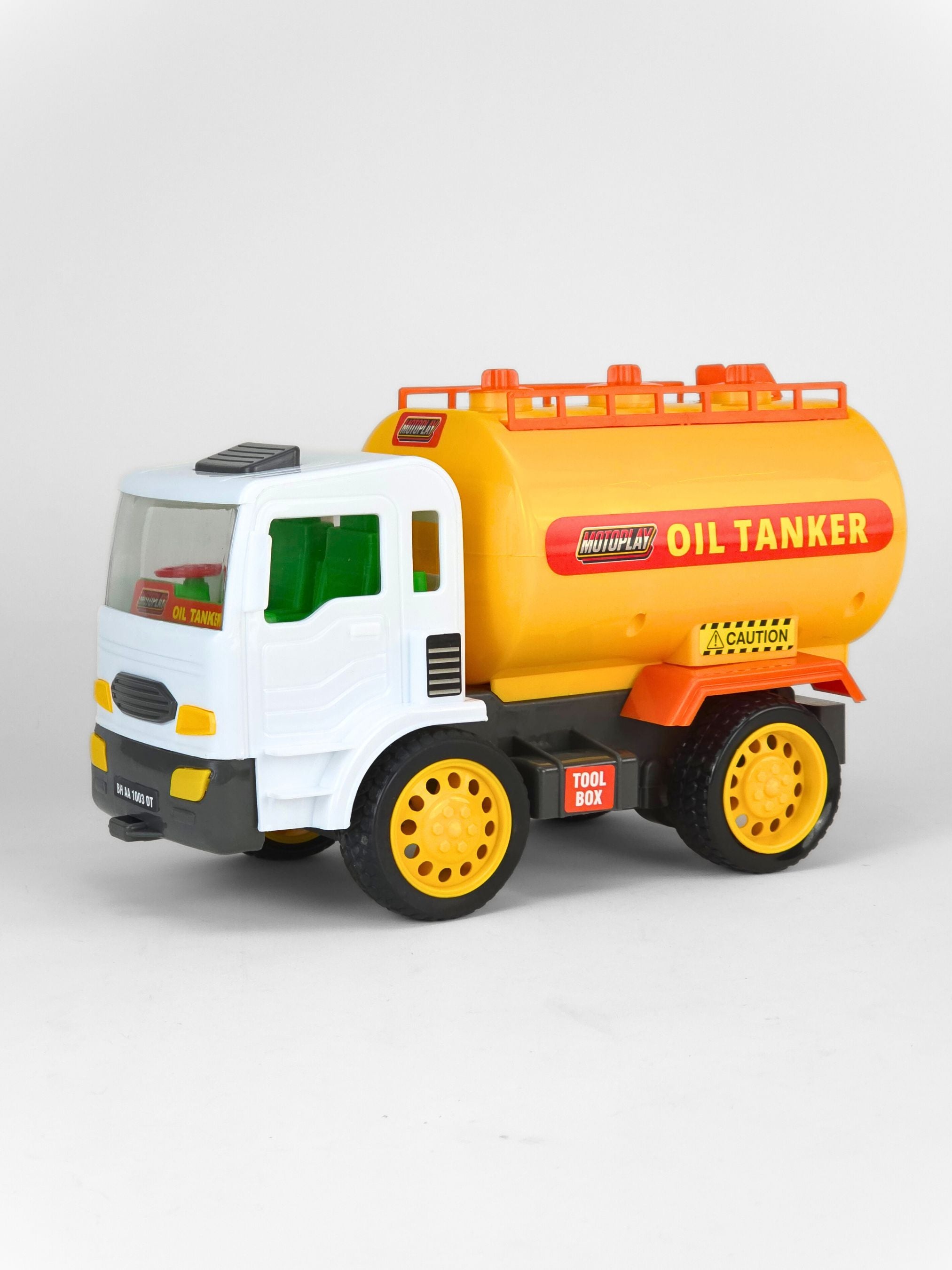 Available in striking color combinations like orange-blue and white-yellow, the Motoplay Oil Tanker is made from safe, non-toxic materials and is BIS certified, offering parents peace of mind along with high-quality play.