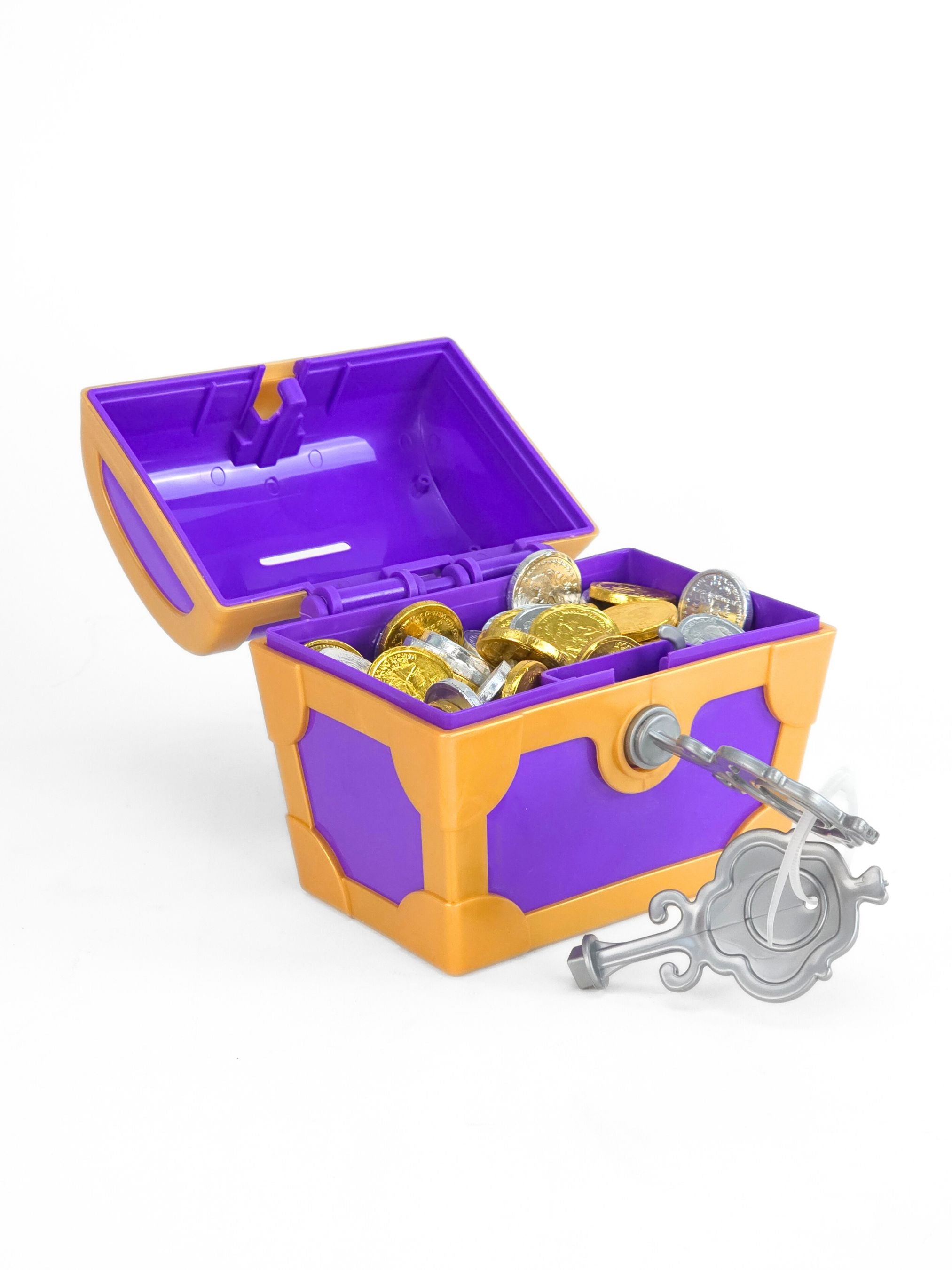 Featuring a lock-and-key mechanism, this treasure chest makes kids feel like real pirates guarding their gold. It works perfectly as a mini piggy bank for real coins or pretend money, making financial habits fun from an early age.