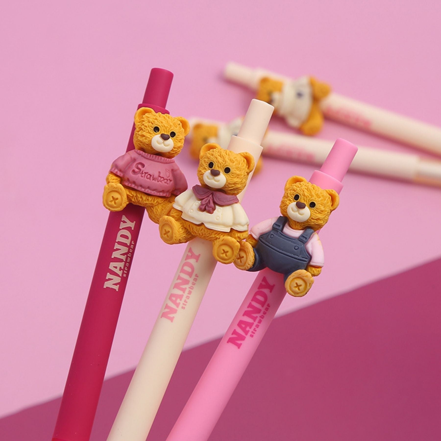 Adorable Tykle Bear Pen can easily quench your thirst for cute stationery items. This Straw Bear Click pen is a playful essential from Tykle by UATOYS! This pen features a teddy bear topper enjoying a drink through a straw, adding a quirky design that brings a smile to any desk.