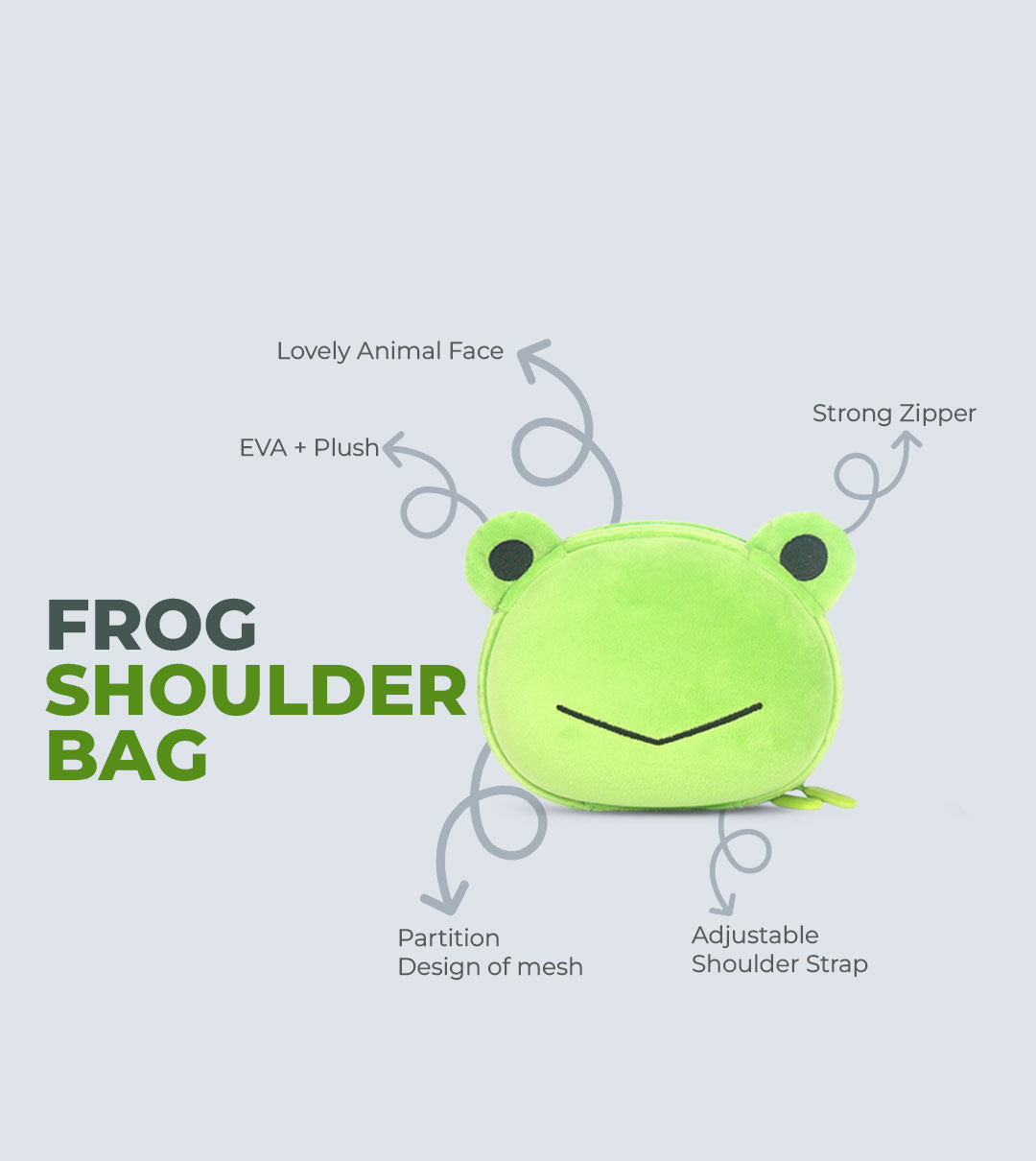 Frog Shoulder Bag for Kids – 3D Plush Design, Waterproof & Lightweight | Tykle