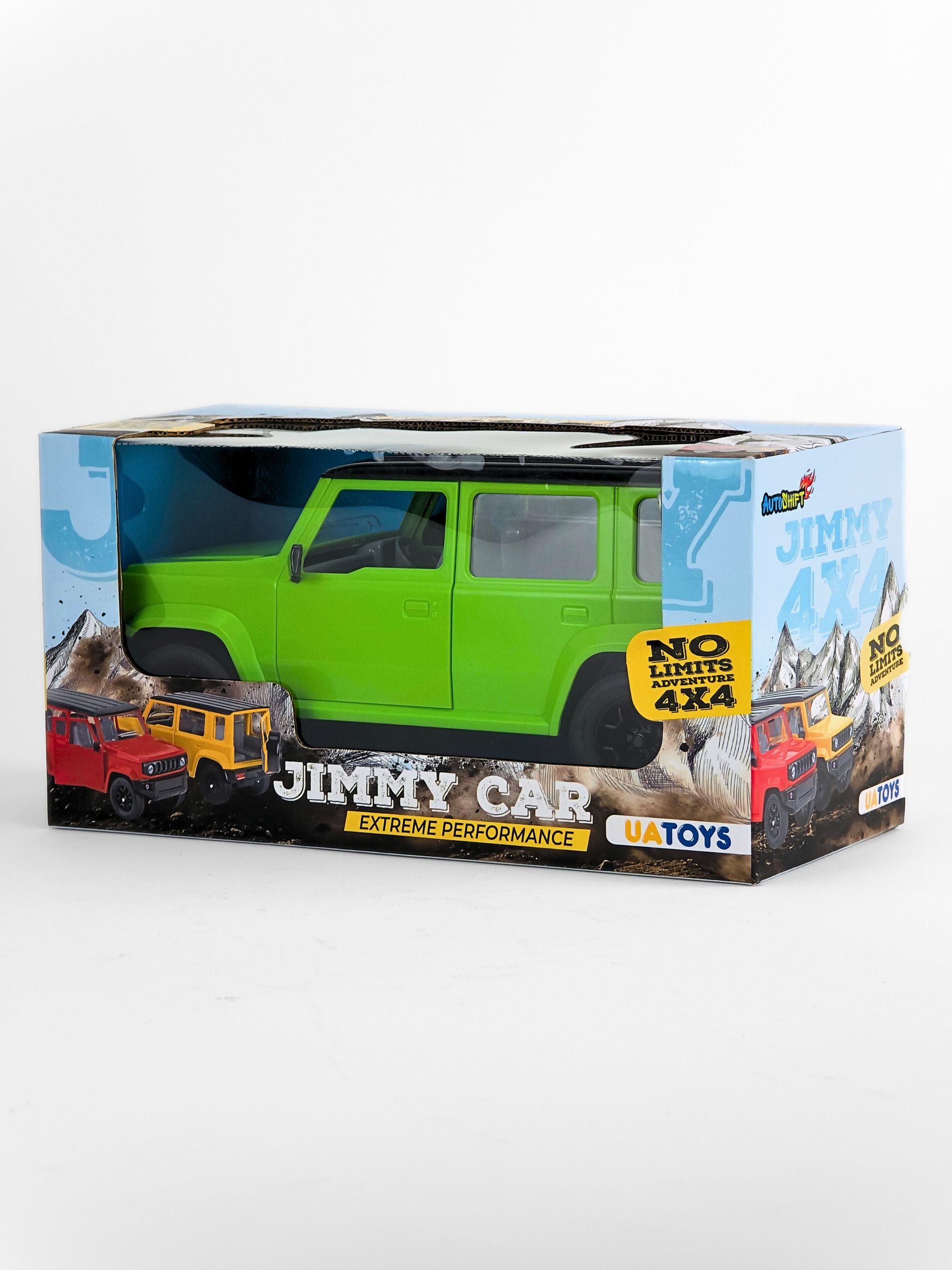 Experience unlimited adventure with the powerful Autoshift Jimmy Car from UATOYS. This car's design is inspired by a 4x4 SUV. This premium toy delivers a realistic driving experience. It features openable doors and detailed interiors.